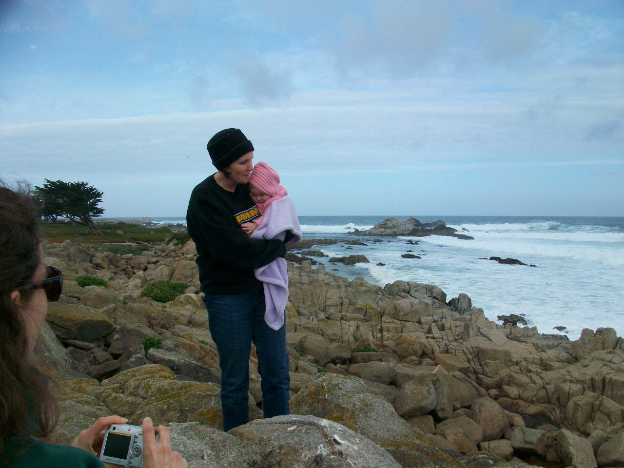 It's 7:00am the morning of our last day in Monterey. Manny, Elliot and Joel admire the oceanview. Several sea otters were popping their heads out of the surf, watching the boys. The otters played in the water, slapping their tails on the surface of the water.